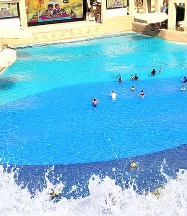هل تفتقد الشاطئ؟ الآن يمكنك غمر أصابع قدميك في شاطئنا الرملي الحقيقي أو إنشاء قلاع رملية رائعة بجانب الماء. يخلق شاطئ LPOD أمواجًا بارتفاع 1.5 متر كل 10 دقائق ليمنحك إحساسًا بمحيط حقيقي. نرحب بجميع الأعمار للسباحة في شاطئ LPOD! يجب أن يكون الأطفال تحت إشراف أبائهم في جميع الأوقات. سترات النجاة متاحة للشراء في السوق.