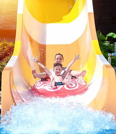 هنا حيث يمكنك الاسترخاء. بينما تأخذ العائلة وقتا مرحا في المنزلقات والالعاب المائية، يمكنك قضاء بعض الوقت للاسترخاء في المنتجع الأكثر راحة بالمتنزه المائي المجهز بنافث الفقاعات مع الذ الكوكتيلات المنعشة .